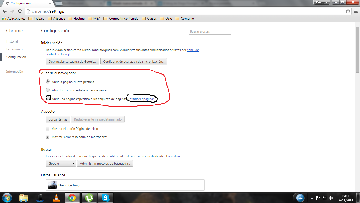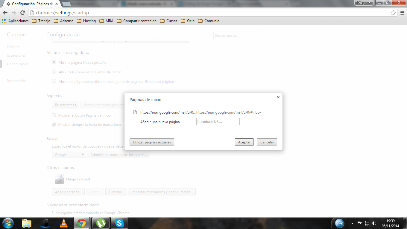 Es interesante echar un vistazo a establecer páginas de inicio: