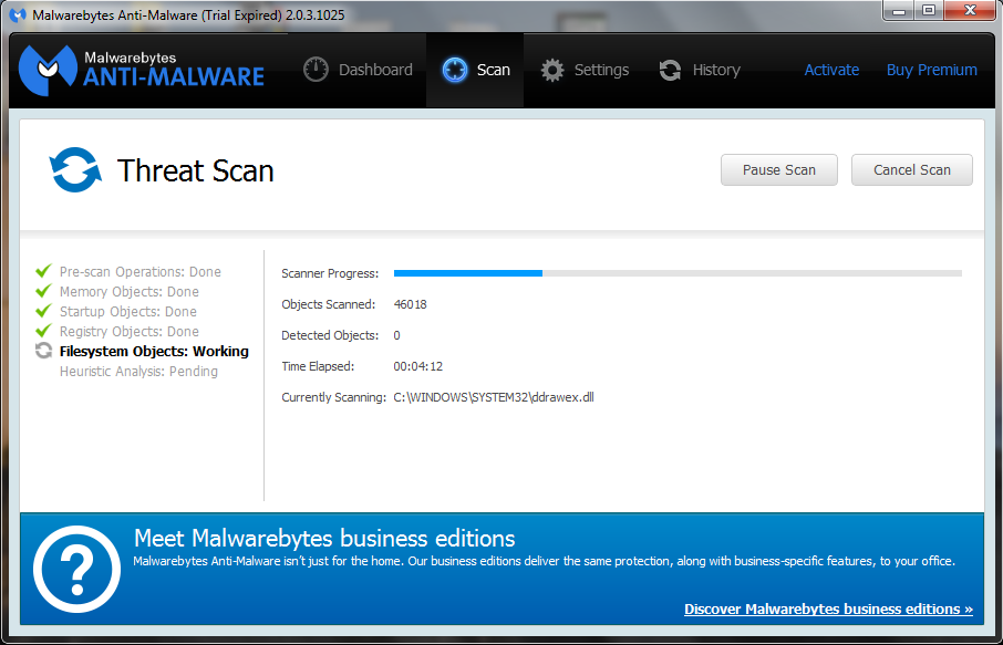 Malwarebyte realizará un análisis de su sistema.