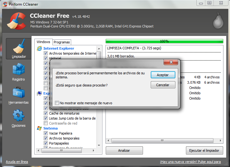 Tras el análisis habrá que ejecutar el limpiador.