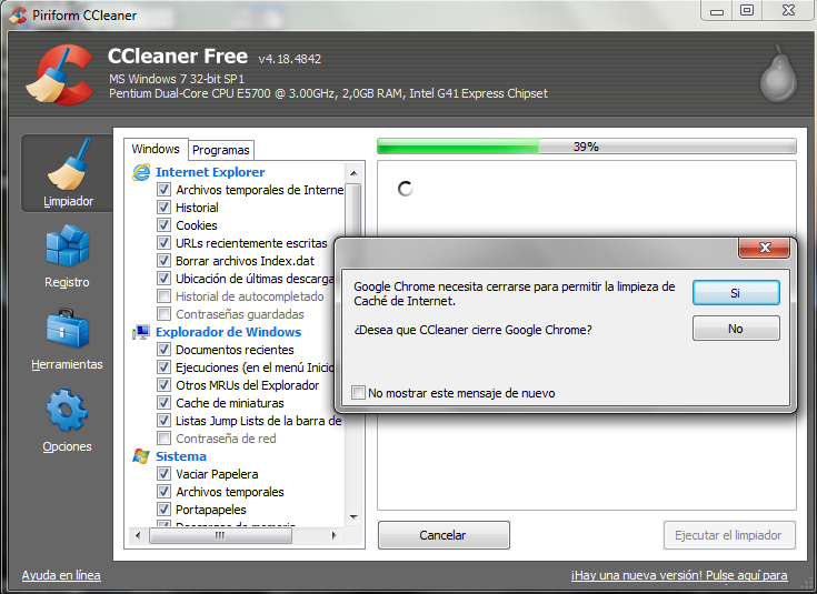 El segundo paso para intentar mejorar el rendimiento de su sistema windows será la comprobación de las configuraciones de Chrome y Internet Explorer.