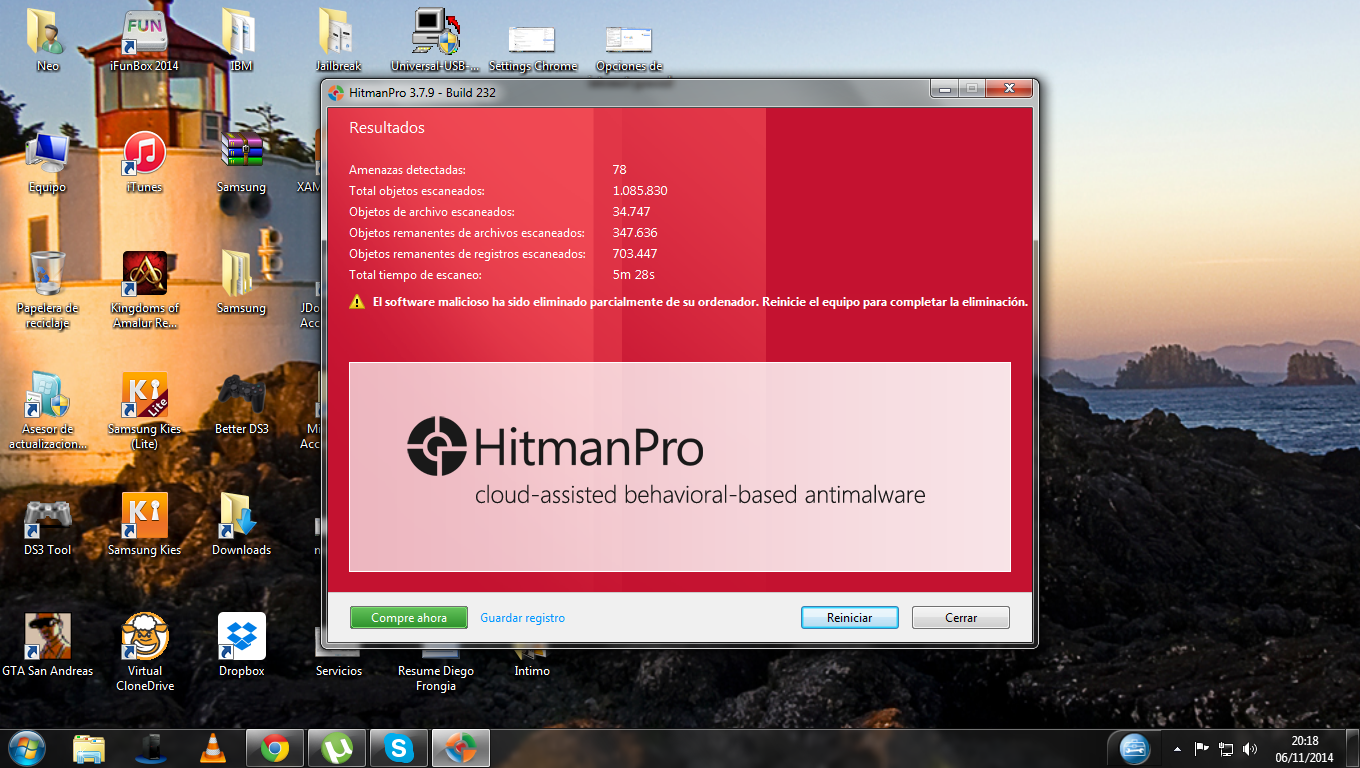 Tras el análisis realizado por CCleaner recomiendo la utilización de HitManPro.