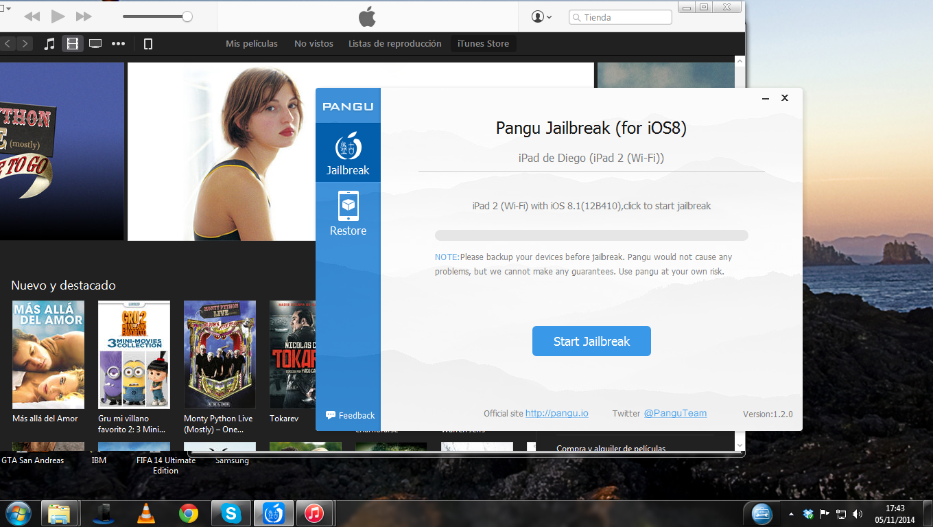 Es aconsejable realizar una copia de seguridad antes de realizar Jailbreak a su dispositivo, si tiene cualquier duda de como se realiza una copia de seguridad puede seguir los pasos descritos en este nuevo enlace.